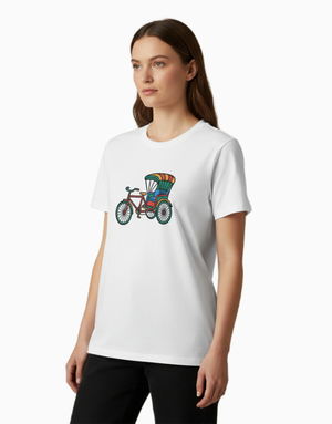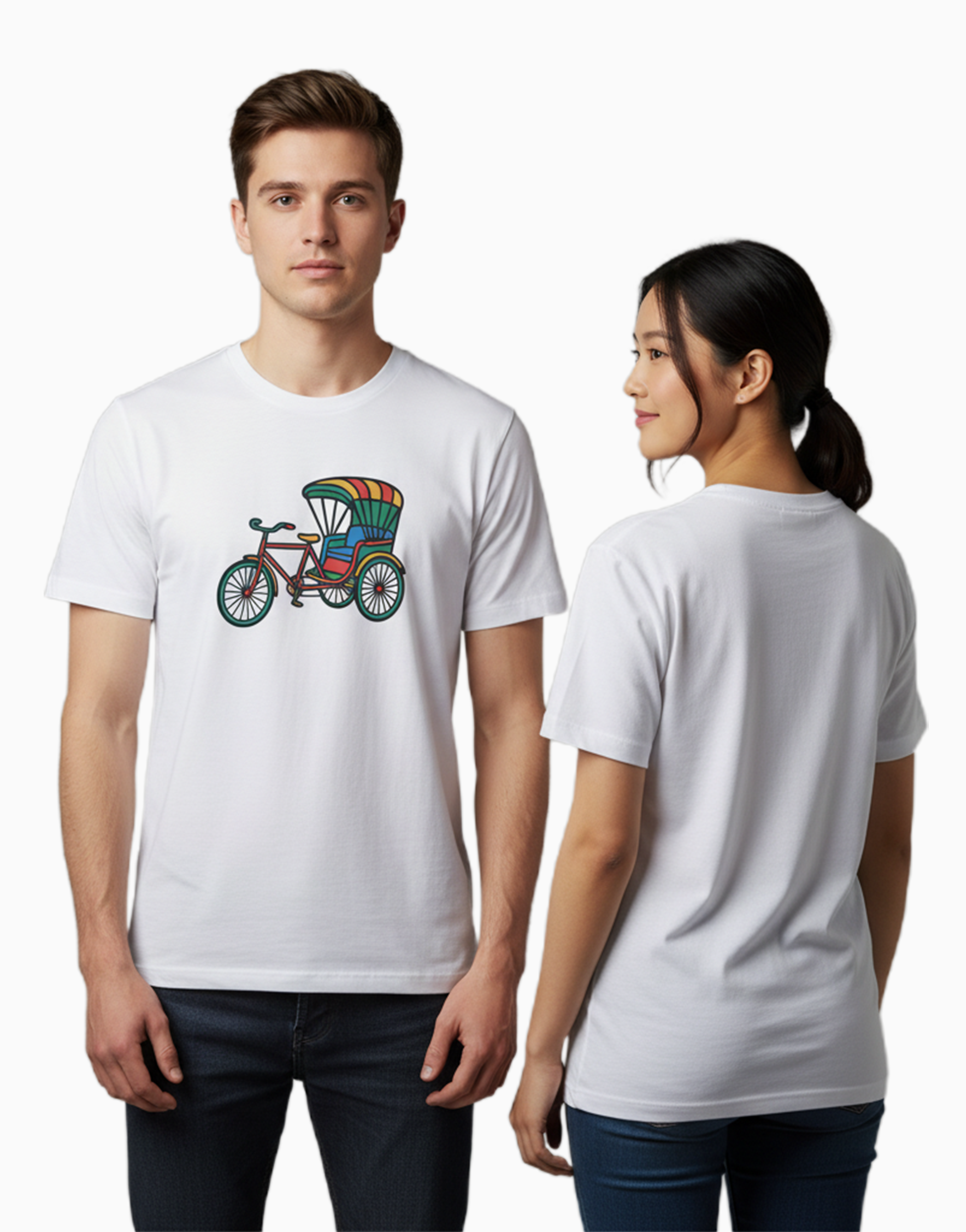 Celebrate the vibrant culture of Bangladesh with our Colorful Rickshaw T-shirt, inspired by traditional rickshaw paintings. A colorful tribute to heritage, creativity, and urban artistry.Crafted from 100% soft, breathable cotton.
