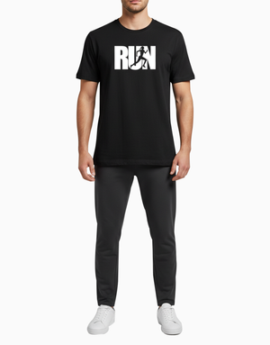 A bold and motivational design featuring a dynamic runner silhouette inside the word RUN. Perfect for fitness lovers, athletes, and anyone chasing their goals.Crafted from 100% soft, breathable cotton.