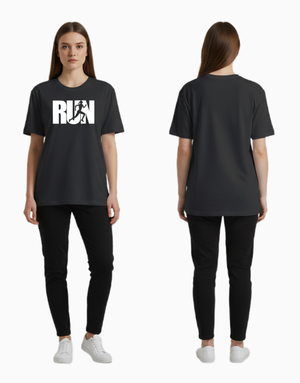 A bold and motivational design featuring a dynamic runner silhouette inside the word RUN. Perfect for fitness lovers, athletes, and anyone chasing their goals.Crafted from 100% soft, breathable cotton.